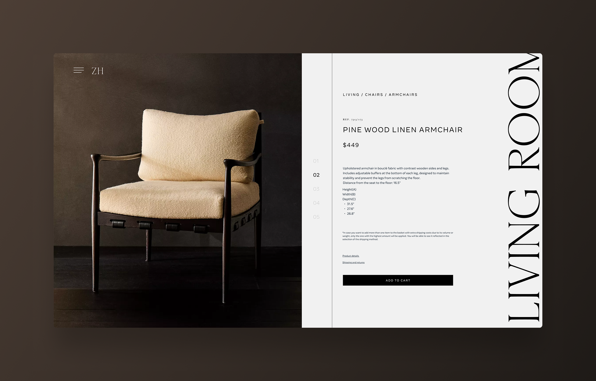 Interface redesign concept for the Zara Home desktop site. Multiple page layouts.